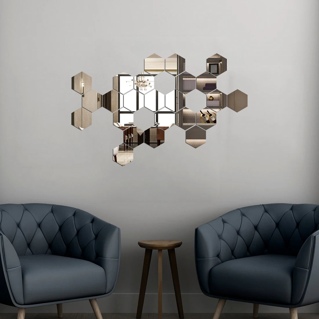 The hexagon, a symbol of harmony and balance, adds a sophisticated architectural element to your décor. Each piece reflects light beautifully, creating a sense of depth and openness while offering a modern aesthetic that complements a variety of interior styles—whether minimalist, industrial, or eclectic.